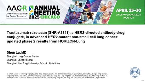 2025 AACR口头报告|G22恒峰创新药瑞康曲妥珠单抗治疗晚期HER2突变非小细胞肺癌研究结果披露